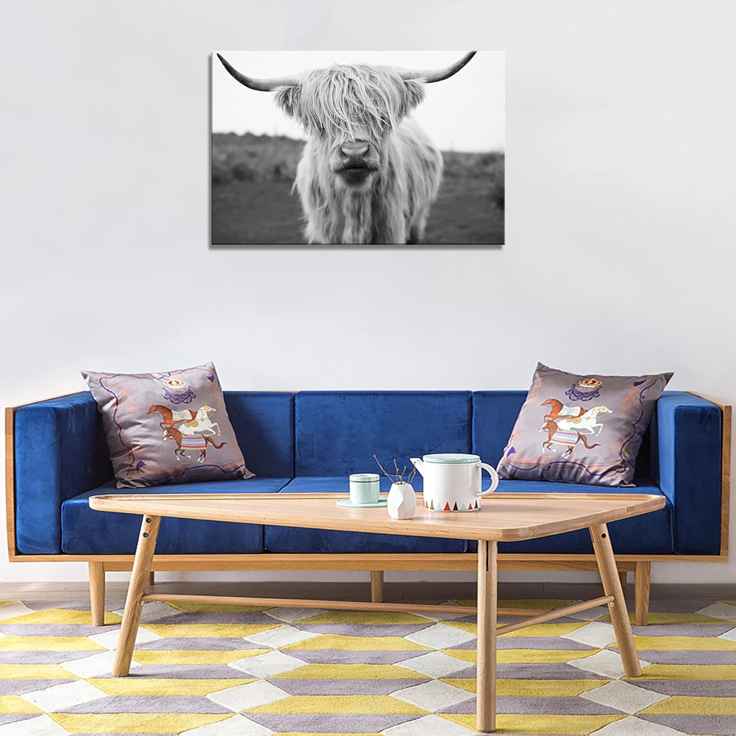 XXMWallArt FC3669 Highland Cow Canvas Art - Black and White Animal Wall Art for Living Room, Bedroom, Office Decor