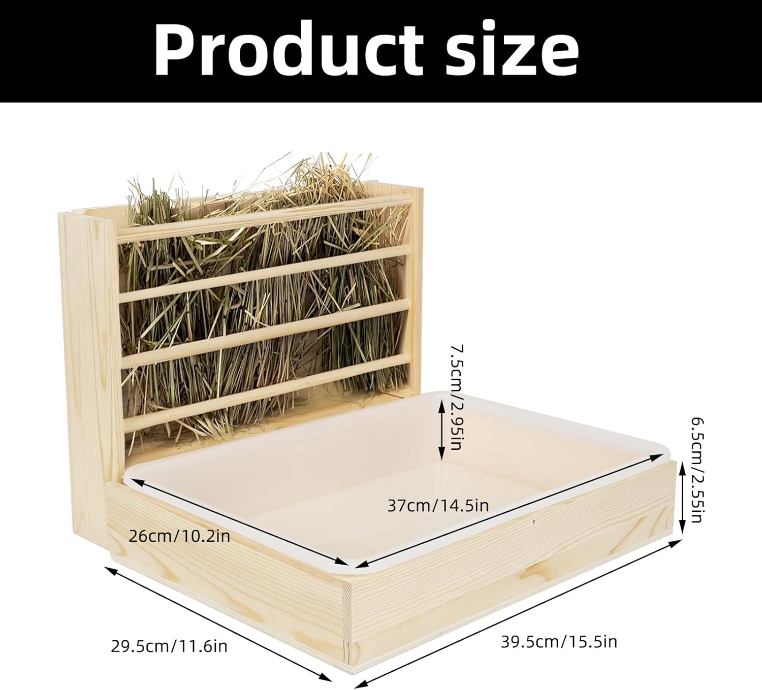 - 【High-Quality Wood】2 in 1 wooden rabbit hay feeder box is made of high-quality wood and plastic, safe and sturdy, wear-resistant and durable, and no harm to small pets, and you can use it with confidence. Warm tips: If you are worried that small animals will slip inside the litter box, you can lay wood shavings or diaper pads inside