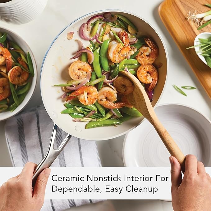 - EASY-CLEAN CERAMIC: High performance ceramic nonstick is made without PFAS, BPA, Lead, or Cadmium* for safe, consistent food release and fast, easy cleanup (*Manufacturing process does not involve adding to the product any of these substances which may otherwise be present in the environment)