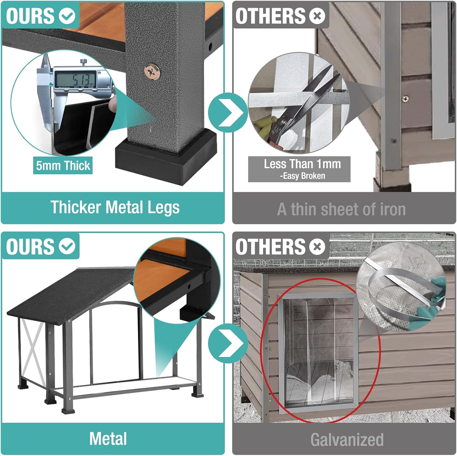 - Anti-chewing Iron Frame:Our dog outdoor kennel combine with solid wood and UNIQUEall edges cover with firm and strong iron frames.Anti-chewing iron frame to prevent your puppy chew the dog house,as well as prevent destroy and attack from wild animals outside,safe and stury home for pets.