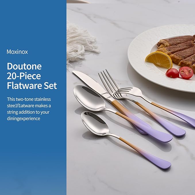 - 【20-Piece 18/0 Silverware Set for 4】- 20 piece 18/0 colorful silverware set , Includes dinner knife set of 4, dinner forks set of 4, dinner spoons set of 4, salad forks set of 4, teaspoons set of 4, perfect silverware set for 4 people family.