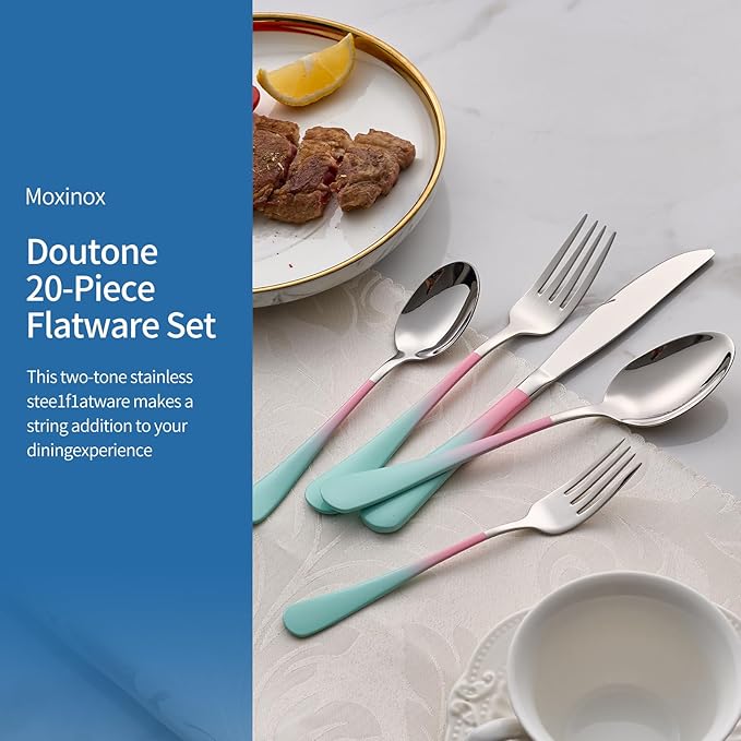 - 【20-Piece 18/0 Silverware Set for 4】- 20 piece 18/0 colorful silverware set , Includes dinner knife set of 4, dinner forks set of 4, dinner spoons set of 4, salad forks set of 4, teaspoons set of 4, perfect silverware set for 4 people family.