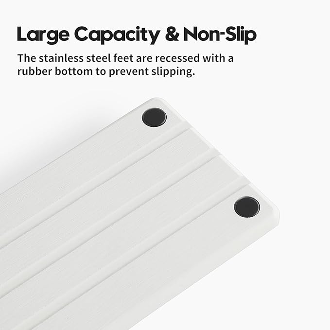 - 【Size and Capacity】This sink caddy has a larger capacity due to the recessed feet. The 4 feet are made of high-grade stainless steel material with non-slip rubber feet, rust-proof. Size: 10"L x 4"W x 1"H. Set of 2 PCS