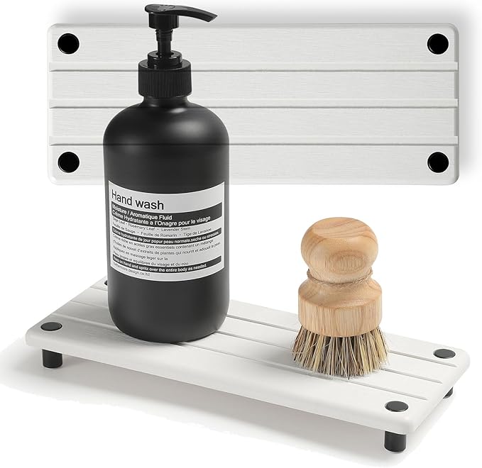 - 【Fast Drying Sink Organizer】Keep your kitchen and bathroom countertops neatly arranged with this quick-drying stone sink caddy. This holder rack absorbs moisture quickly and is specially designed for your soaps, sponges, or brushes