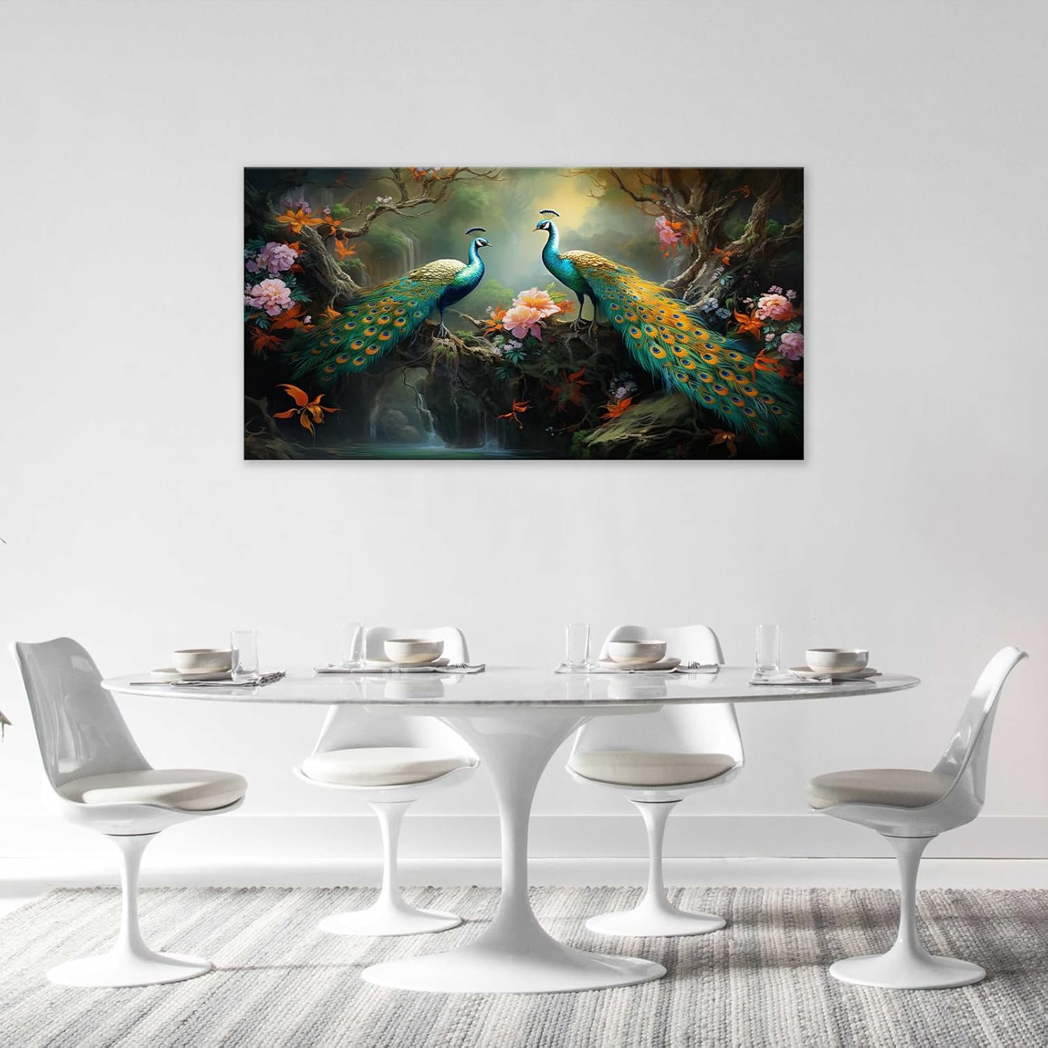 Large Peacock Wall Art Aesthetic Bird Canvas Living Room Pictures Framed Prints Floral Modern Wall Decor Painting Artwork for Bedroom Dining Office Home 60"x30"