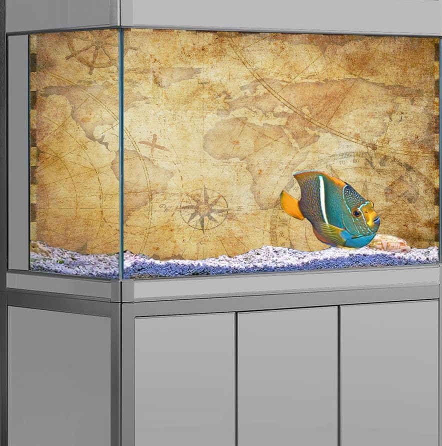 24X16IN Retro Old Travel World Map Terrarium Background, Art Parchment Pirate Treasure Map Reptile Habitat Background with 10EVA Double-Sided Tape