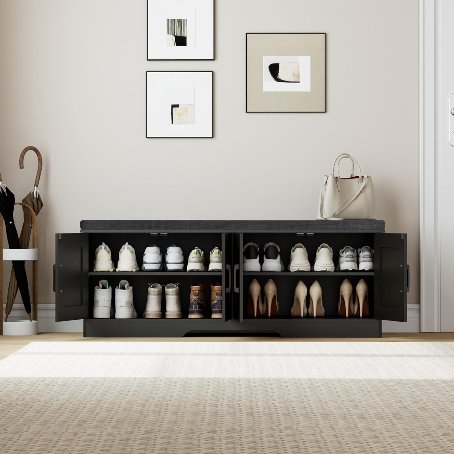- More Comfortable Shoe Change Cabinet: With a 25 mm sponge cushion on the bench top, you can change shoes by sitting on the bench more comfortable without bending down or squatting
