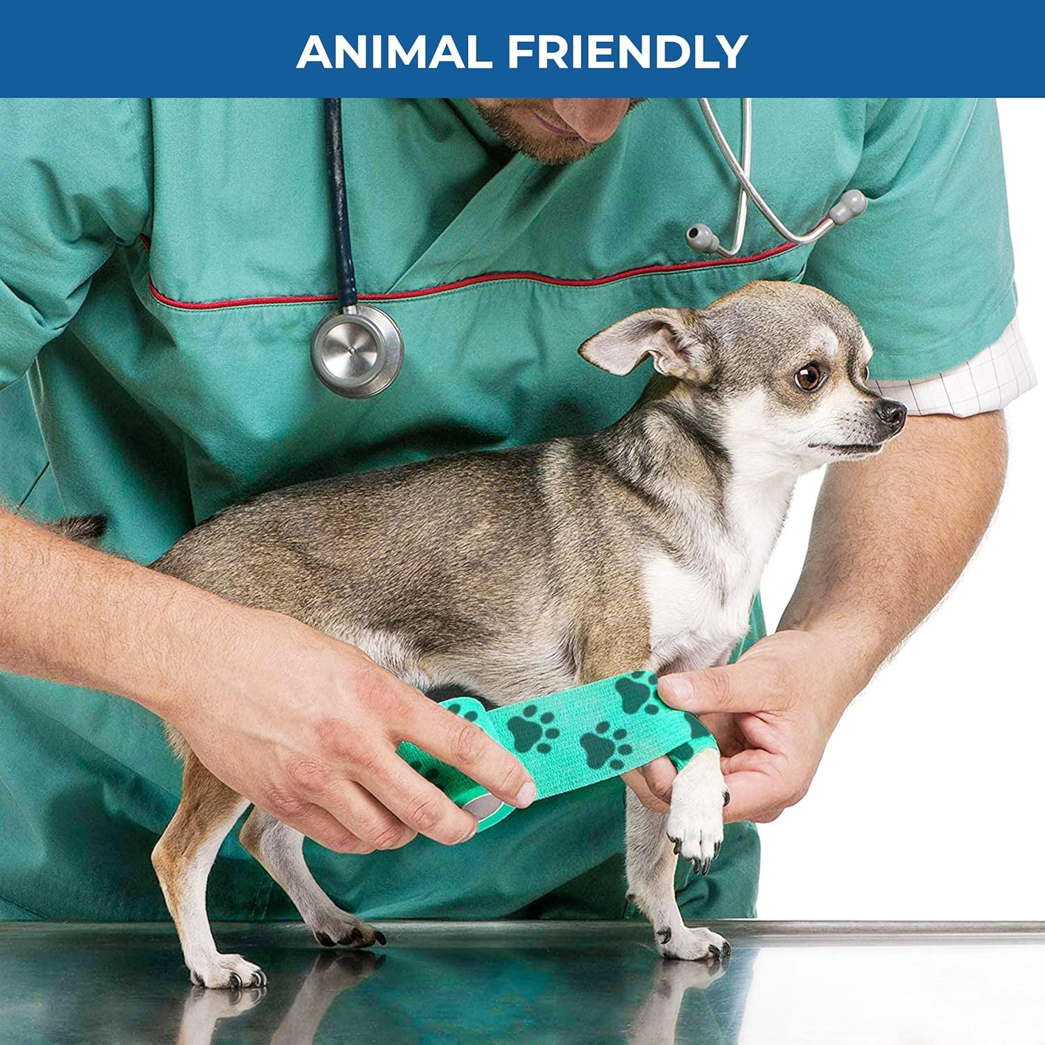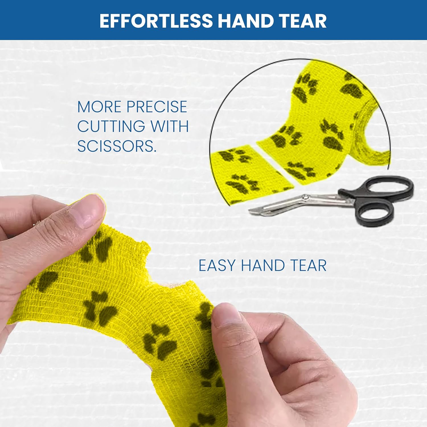 Self Adhesive Bandage Wrap - Pack of 09 Assorted Colors, Breathable & Water-Resistant Vet Wrap for First Aid, Sports Injury, Body Sprains, & Pets (2 Inch Paw Print Multicolor - 09 Pack)