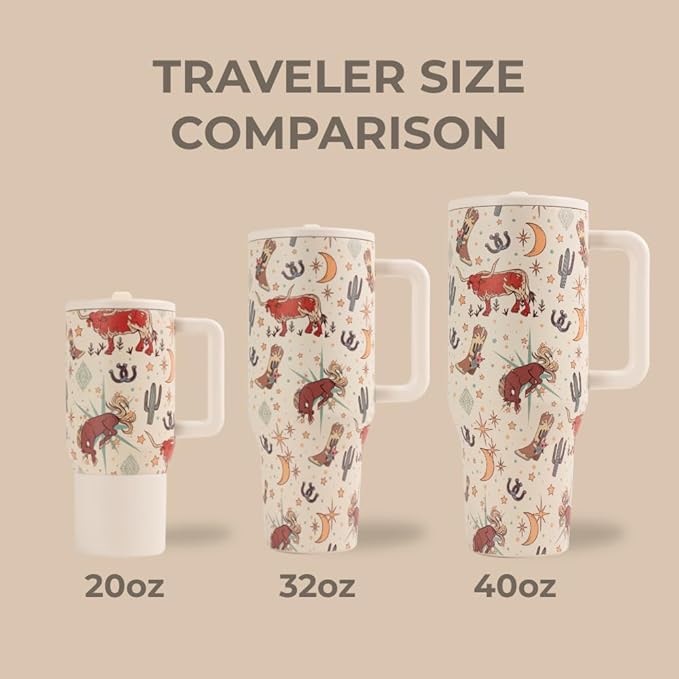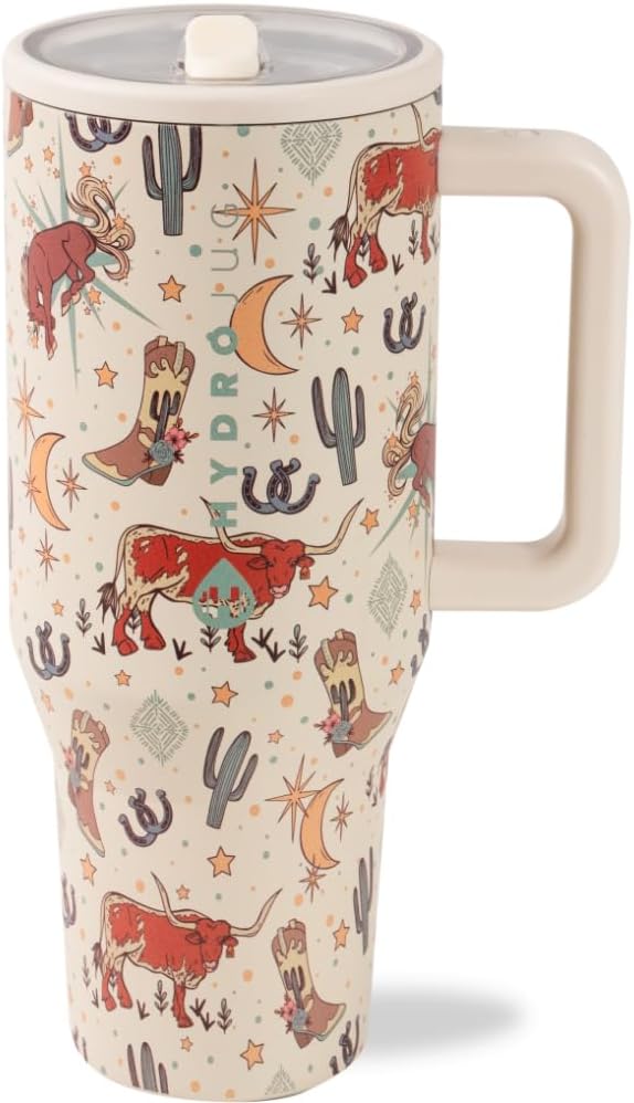 HydroJug Traveler - 40 oz Water Bottle with Handle & Flip Straw - Fits in Cup Holder, Leak Resistant Tumbler-Reusable Insulated Stainless Steel & Rubber Base - Gifts for Women & Men, Rodeo