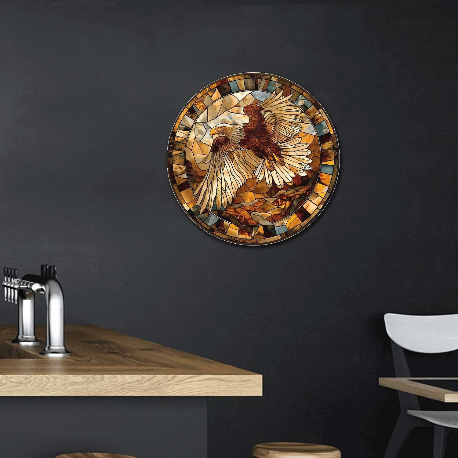 Lygond Metal Sign Tin Sign Circular Stained Glass Eagle Funny Gardening Gift For Restaurant 8×8 Inches