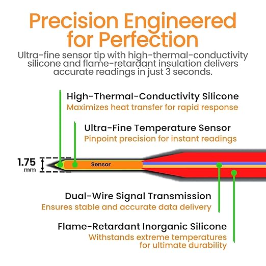 - 1. ✅ 3-second rapid measurement: The probe tip is filled with high thermal conductivity sol for quick temperature detection!