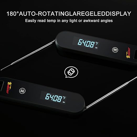 - Super Easy to Read: Whether you're righty or lefty, hold it however you like, the bright screen flips 180° so you can always see the temp clearly. No squinting needed, even in bright sunlight or dim light!