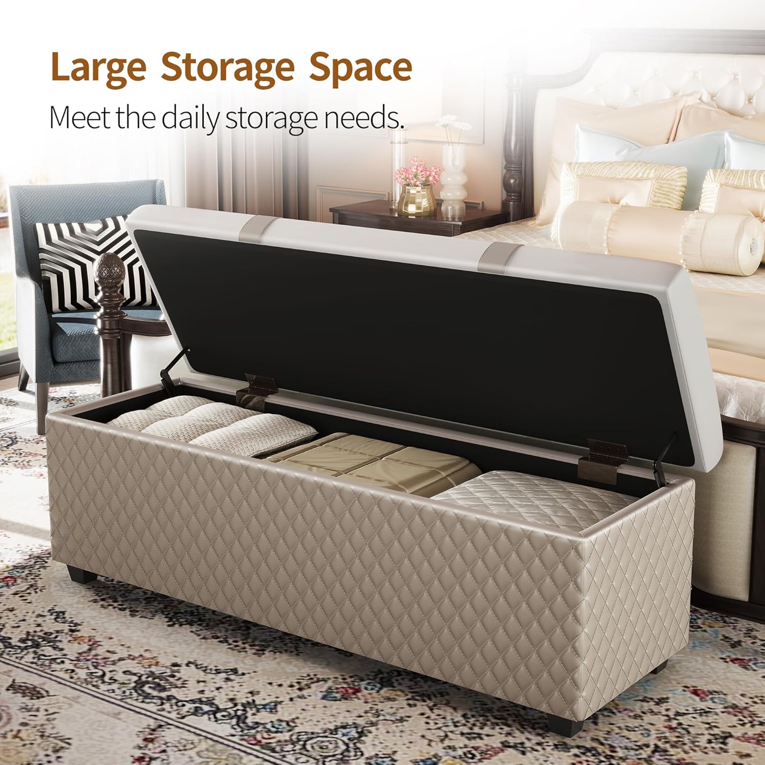 - 【 Easy Assembly & maintenance 】 4 legs assembly required only when it comes to set up this modern bed storage trunk.Leather surface is resistant to dirt and easy to maintain. If it gets dirty, It can be easily wiped clean with a damp cloth