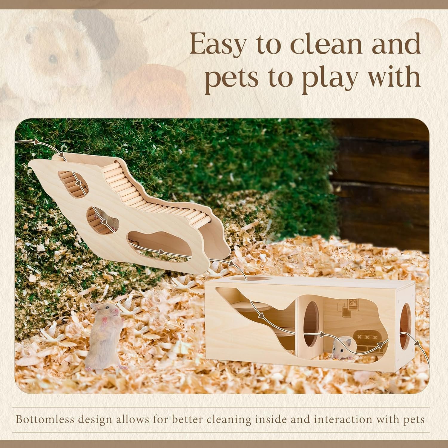 - Natural and Safe Material for Your Pet: crafted from natural basswood, this hamster tunnels and hideouts provide robust and safe environment for your little pet; The splicable, no nail construction ensures a chewable yet sturdy home; The wood is meticulously polished to ensure a smooth surface, contributing to a healthier habitat for your pet
