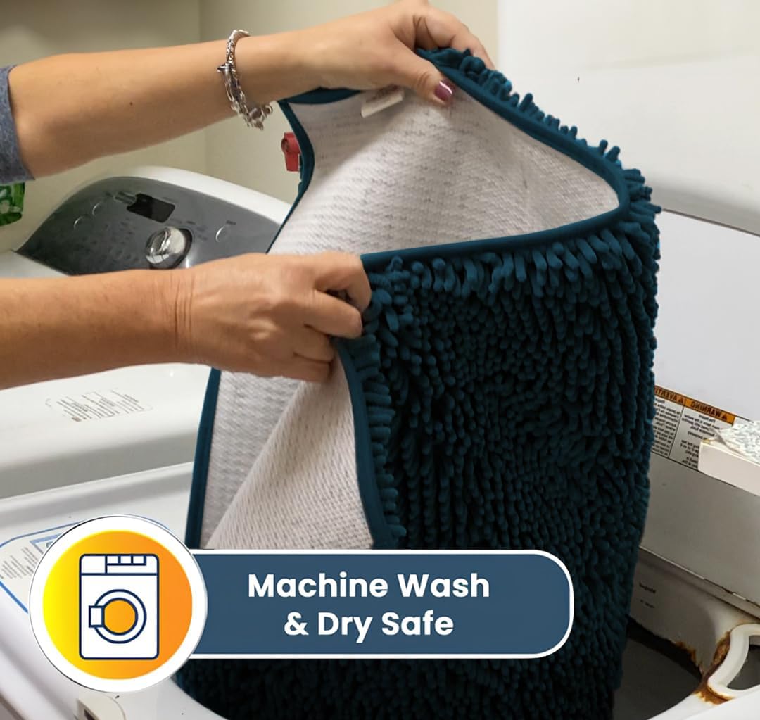 - [ ULTRA MOISTURE ABSORBENT ] Designed with a thick layer of plush 1-inch chenille that soaks up to 5X its weight for maximum water absorption ideal for trapping liquid from shower floors and wet spills from pets.