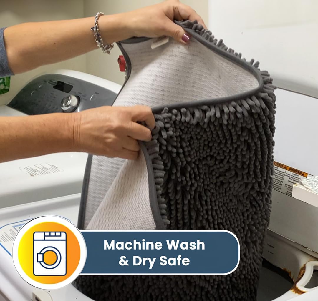 - [ ULTRA MOISTURE ABSORBENT ] Designed with a thick layer of plush 1-inch chenille that soaks up to 5X its weight for maximum water absorption ideal for trapping liquid from shower floors and wet spills from pets.