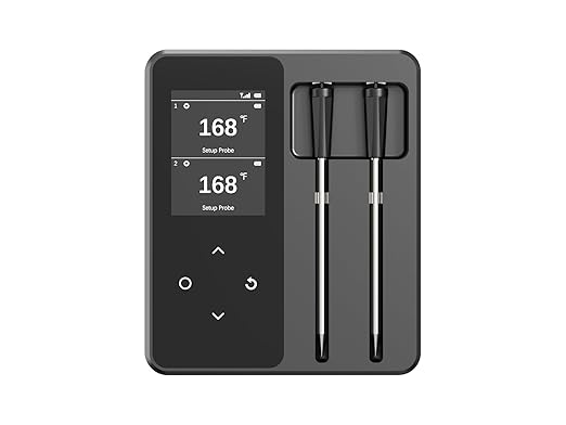 - ♨️Two Ultra-Thin Probes🖈: Allows you to monitor time and temperature for two different dishes at once. The ultra-thin design preserves the integrity of your proteins and retains their juices, ensuring perfectly cooked meat every time.
