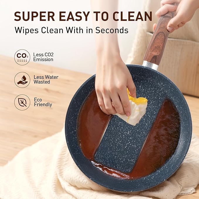 - ๐๐๐ฌ๐ฒ ๐ญ๐จ ๐๐ฅ๐๐๐ง: Say goodbye to scrubbing and soaking. Our cookware features a smooth, easy-to-clean surface, ensuring that tidying up is as simple as enjoying your delicious creations. Easy to clean granite pots and pans