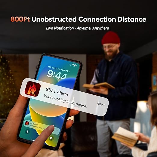 - Bluetooth 5.4 Remote Monitoring – Say goodbye to tangled wires with this advanced wireless meat thermometer. Powered by Bluetooth 5.4, it lets you monitor your cooking from up to 300ft away. Enjoy peace of mind with 30 minutes of offline data storage that automatically syncs with the app, ensuring you never lose important cooking information. Stay in control and cook with precision, no matter where you are.