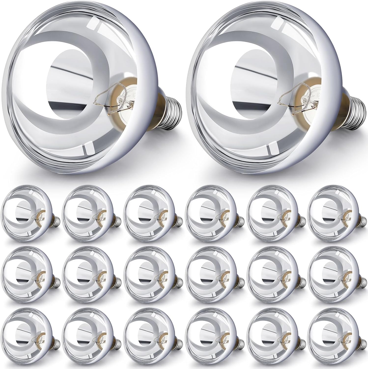 VIHOSE 20 Pack 250 Watt Heat Lamp 120v R40 Heat Lamp Bulbs Glass Incandescent Light Bulbs Incandescent Heating Lightbulbs for Reptiles Chicks Food Puppies Bathroom, Use E26 Base (Silver)