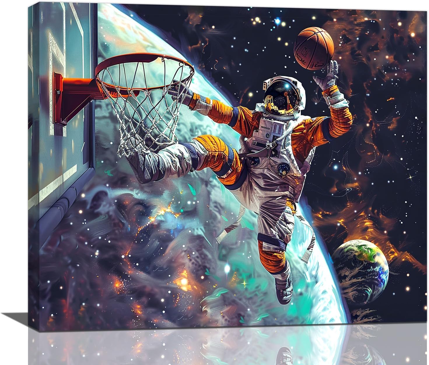 Quorin Astronaut Wall Art Funny Spaceman Basketball Pictures Space Galaxy Planet Wall Decor Canvas Print Painting Artwork for Bathroom Living Room Bedroom 20"x24"