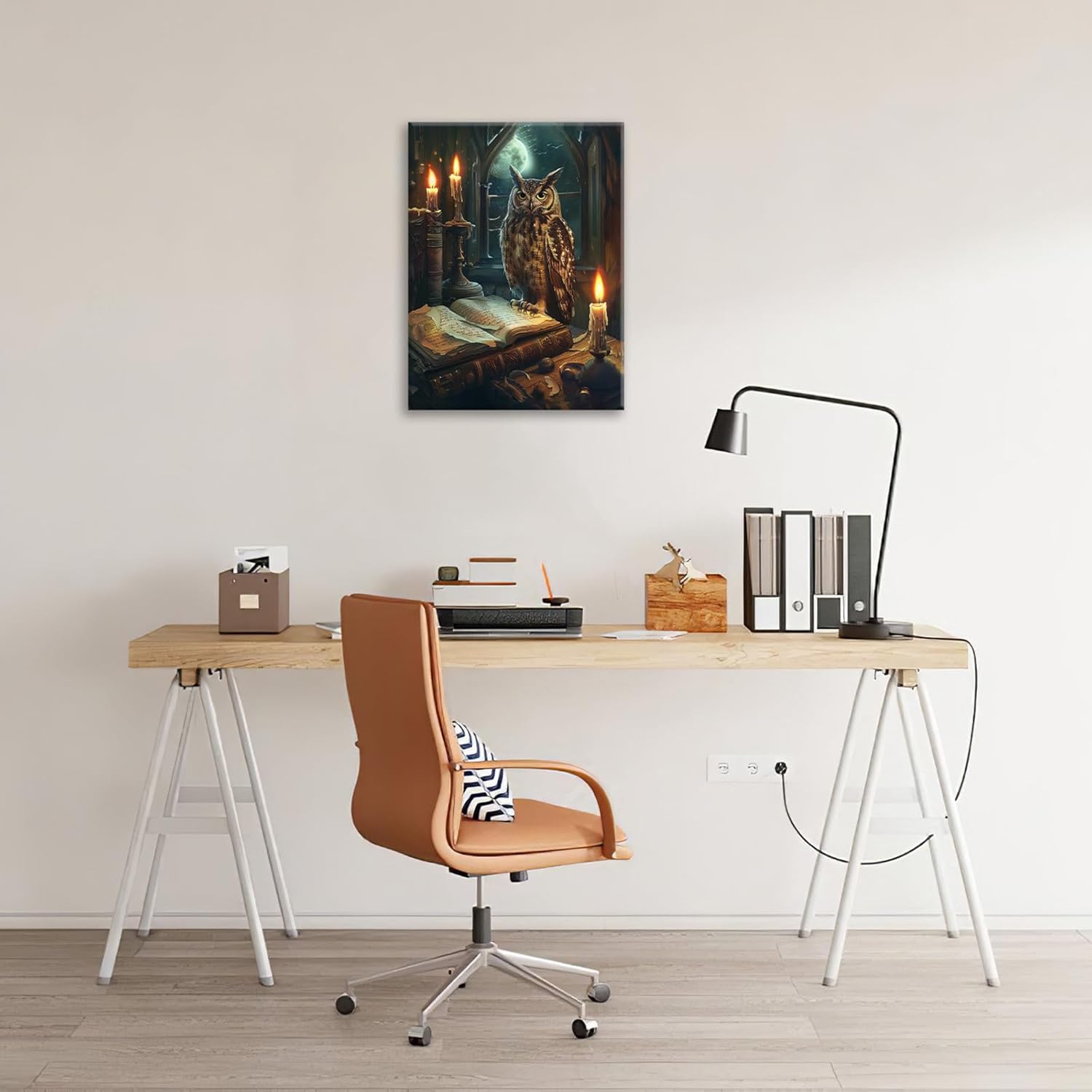 Owl Book Wall Art Vintage Canvas Wall Decor Prints Framed Painting Owls Pictures Gifts Artwork for Bathroom Living Dining Bedroom 16"x20"