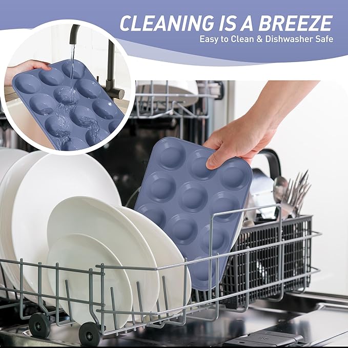 - Food Grade Silicone Muffin Tray: Safe for the oven, microwave, dishwasher, fridge, and freezer. With an impressive heat resistance range from -104°F to 446°F, it’s perfect for all your favorite baked goods. thick walls prevent heat transfer to countertops – safer than other thin plastic baking cupcake muffin pans. Food grade silicone of our baking cupcake muffin pans, maintaining 99% "like-new" appearance after heavy use.