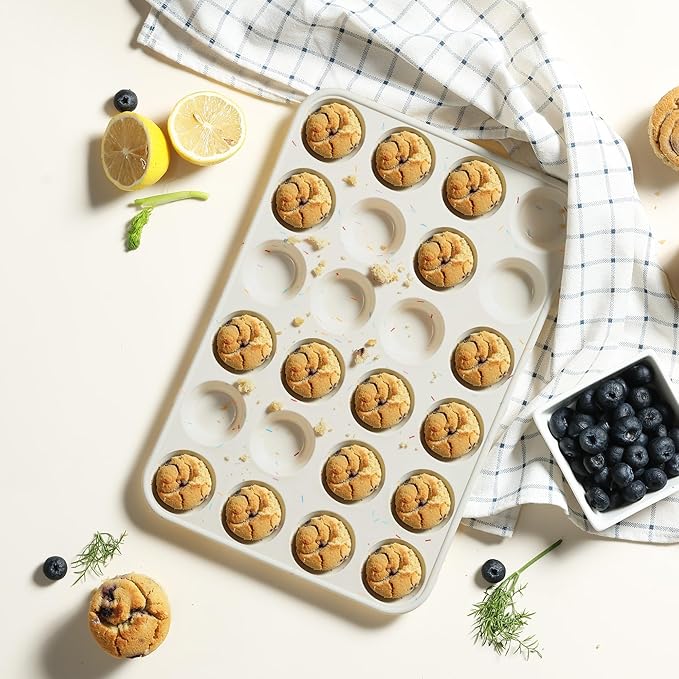 2 Pack 24 Cups Silicone Mini Muffin Pan with Metal Reinforced Frame Silicone Molds Cupcake Cake Baking Cheesecake Pans Cookie Baking Chocoflan Cupcake Mold Mini Bundt Cake Pan Women Gift