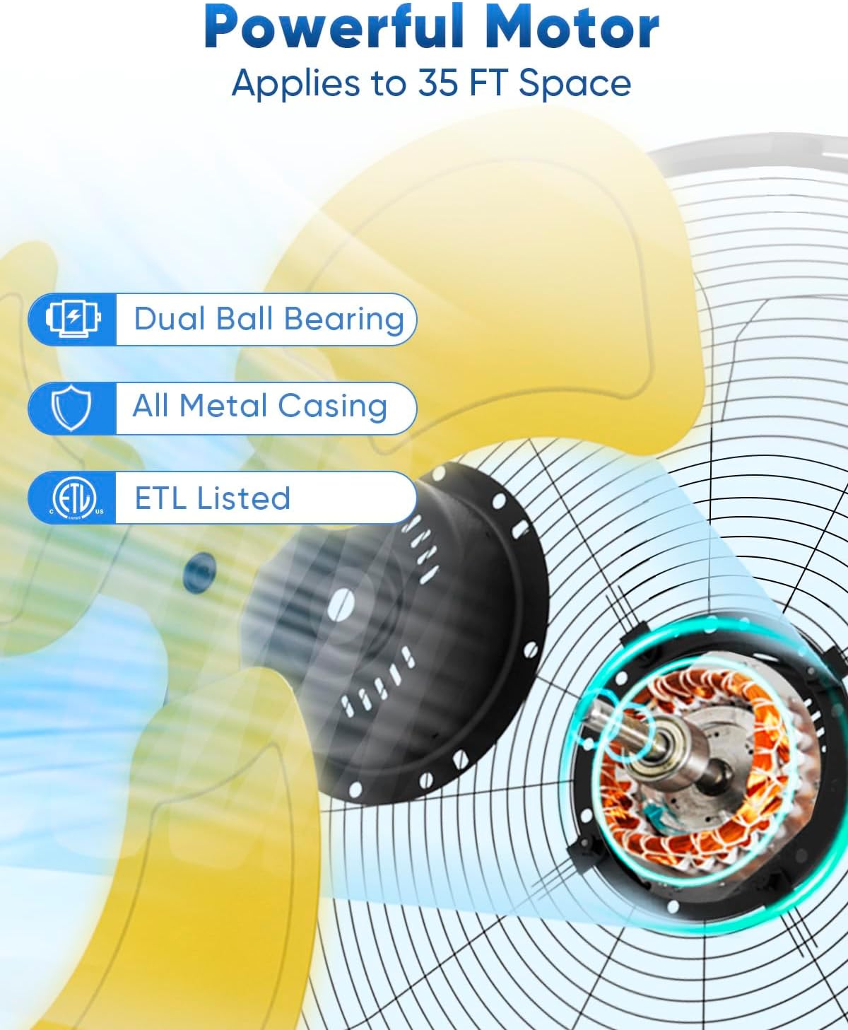 - Easy Control & Oscillation: Adjust settings via separate control panel (35.43" cable)- toggle 3 speeds, 90° auto-sweep, and manually tilt 65°vertically to direct airflow exactly where needed.