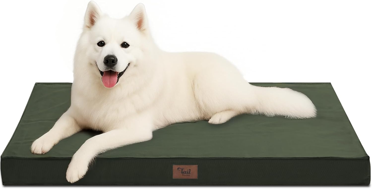 Outdoor Large Dog Bed, Waterproof Dog Bed for Large Dogs, Egg Crate Foam Pet Bed with Removable Washable Oxford Cooling Cover, Dark Green