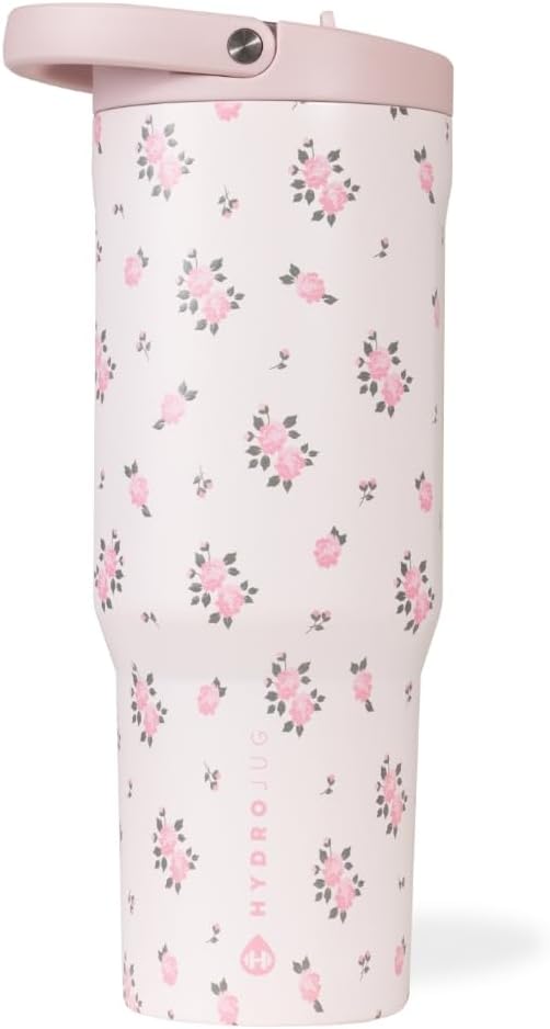 HydroJug Sport - Stainless Steel Tumbler with Straw, Vacuum Insulated, 32oz Leakproof Water Bottle, Ergonomic Design, Reusable, Dishwasher Safe, Rubber Base, Durable for Gym or Outdoors, Wildrose