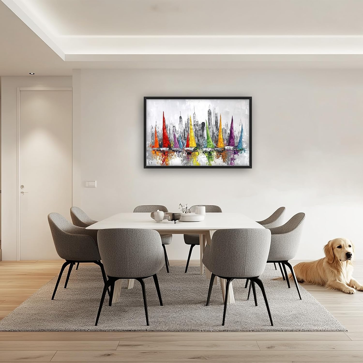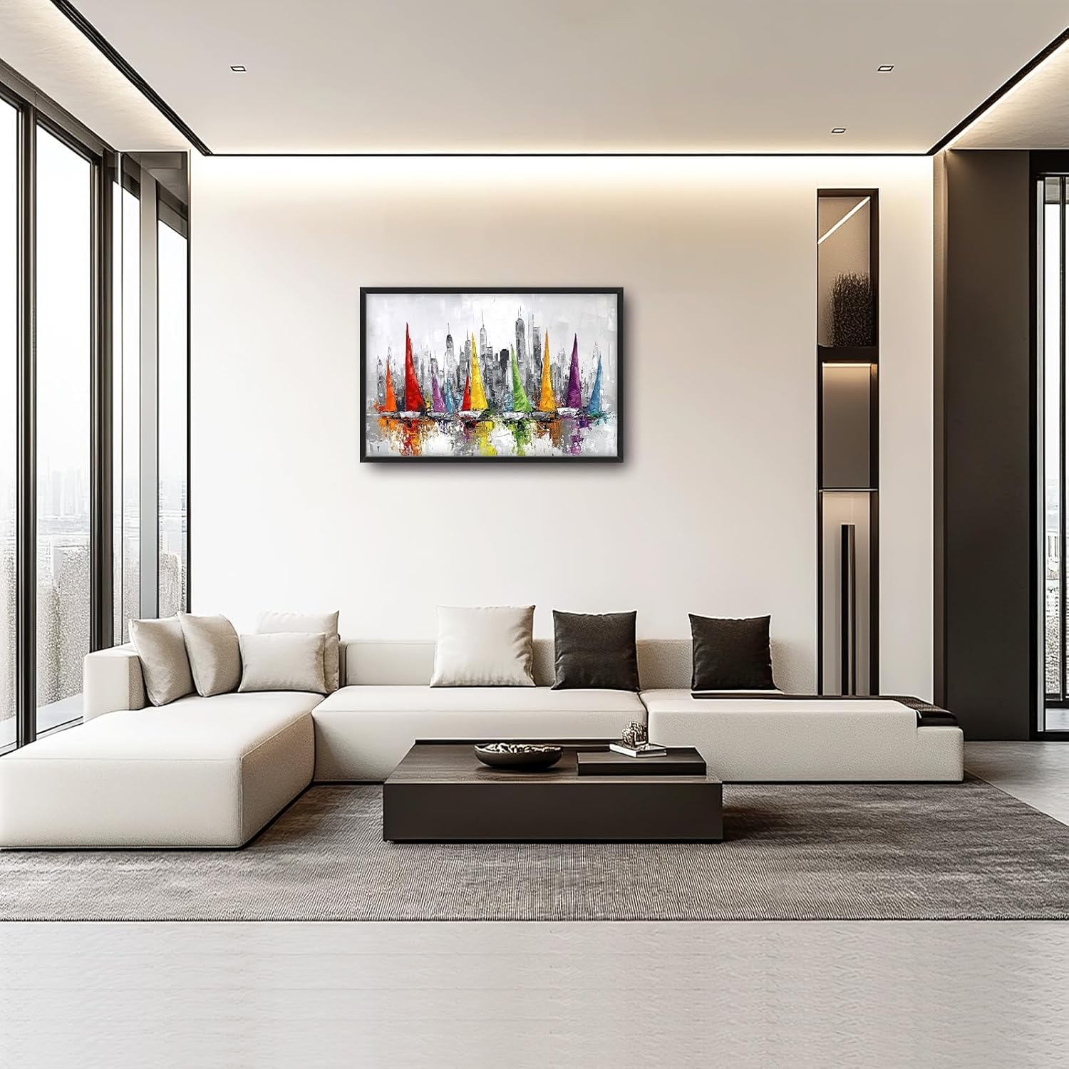 Framed Large Sailboat Wall Art for Living Room, Oversized Abstract City Wall Decor Colorful Sailboat Canvas Painting Pictures Modern Artwork for Living Room Bedroom Office Dinging Room 36"x24"