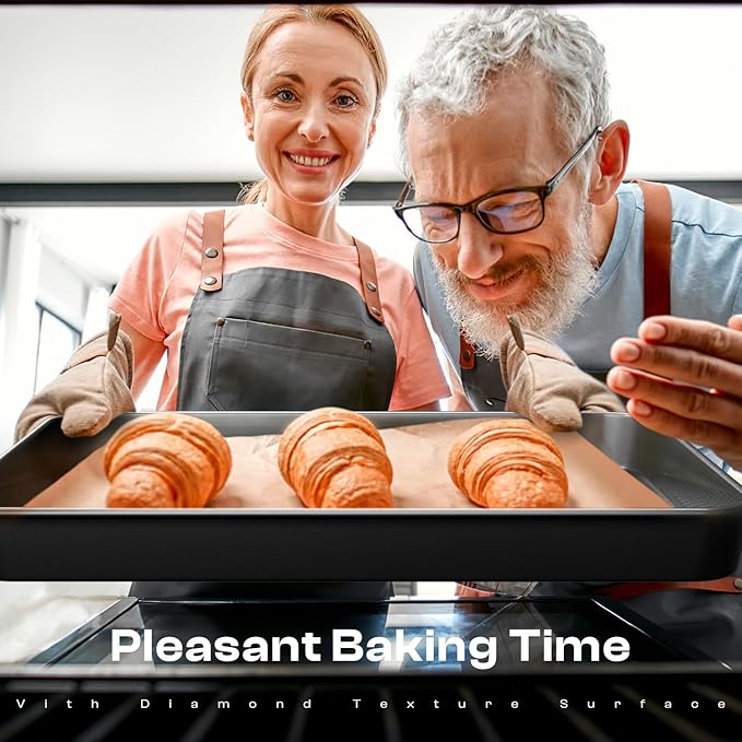 - Carbon Steel Construction:Crafted from 57% thickened carbon steel for lasting durability, this baking pan set is PTFE, PFAS, and PFOA free. It resists warping at temperatures up to 428Β°F, ensuring perfect baking results every time
