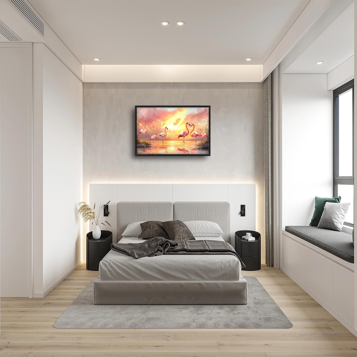 Large Flamingo Wall Art for Living Room, Framed Oversized Sunset Lake Wall Decor Landscape Canvas Painting Pictures Modern Artwork for Living Room Bathroom Bedroom Office Dining Room 36"x24"