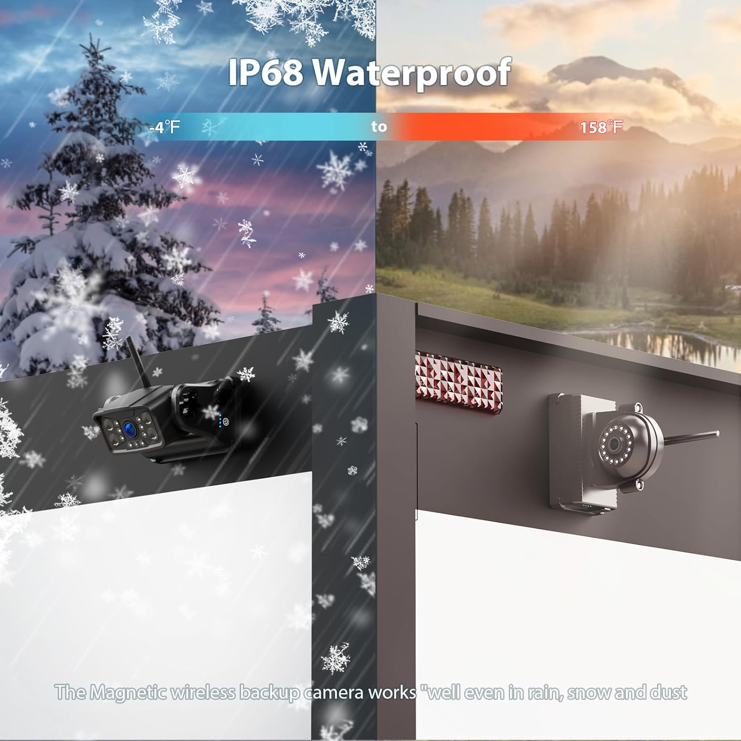 - ⚡Magnetic Wireless Rear/Side View Camera: This magnetic wireless backup camera system includes a 10" HD monitor and 2 magnetic rear view backup cameras and 2 magnetic side view backup cameras. With a strong magnetic base, this magnetic wireless backup camera system can be firmly attached to metal surface. If your vehicle is not built with a metal cover sheet, you will need to mount a highly magnetic metal plate so that the magnets on the camera are strong enough to hold.