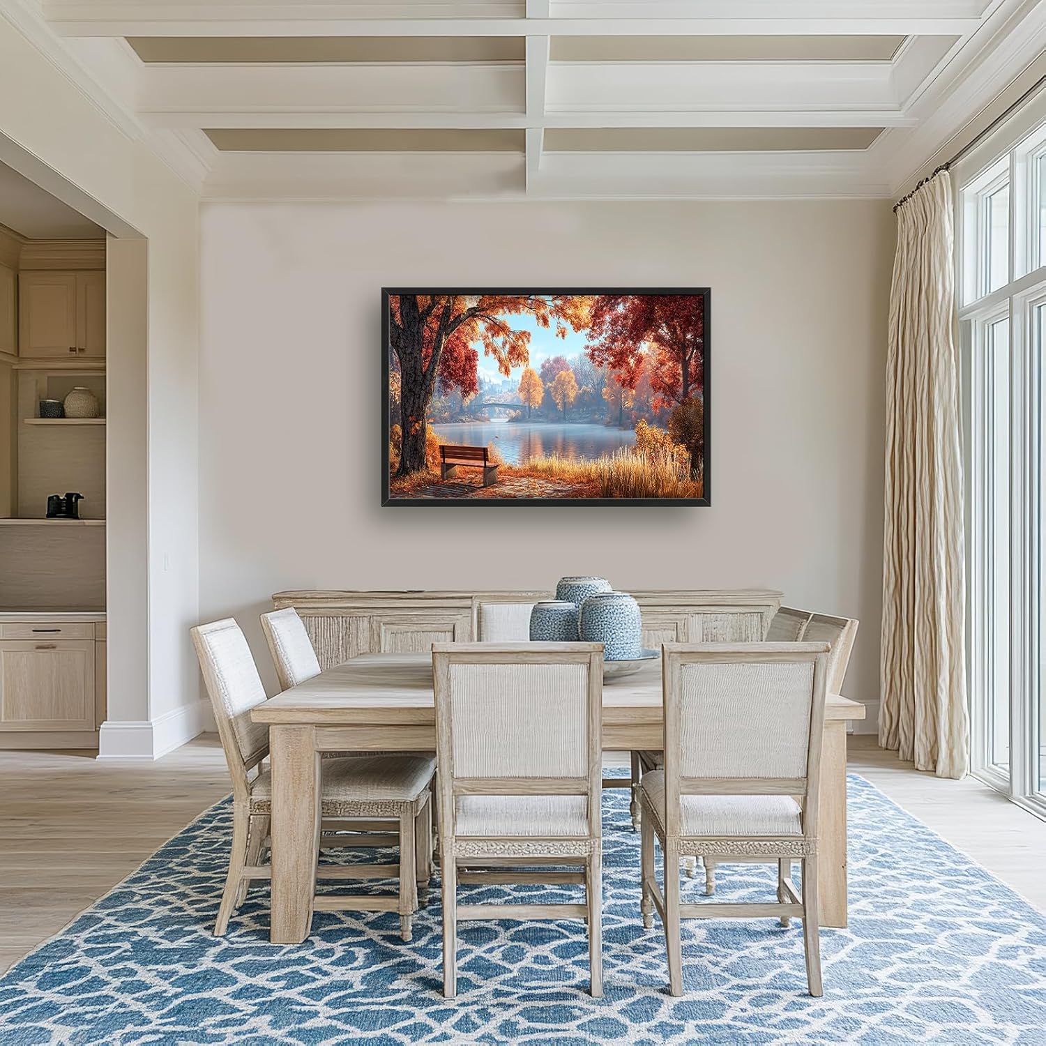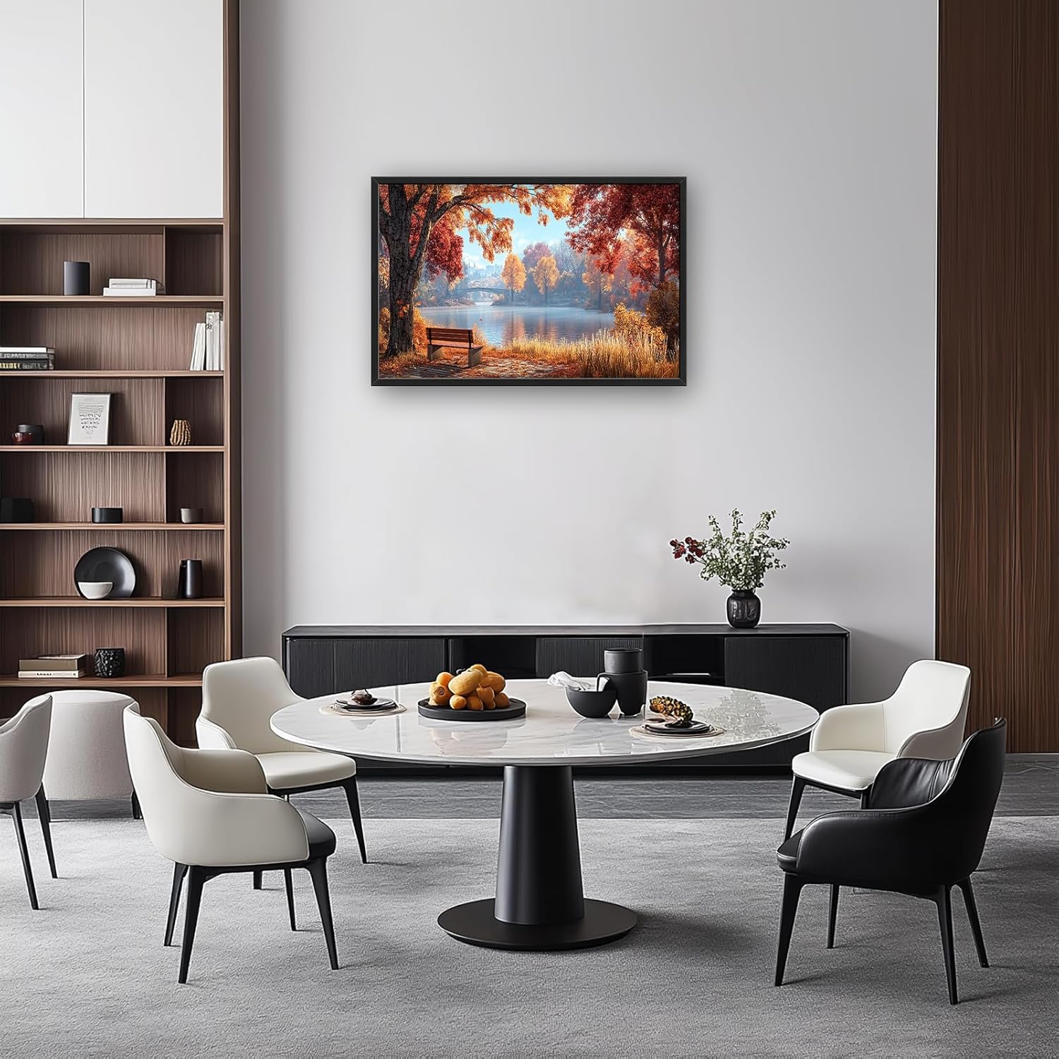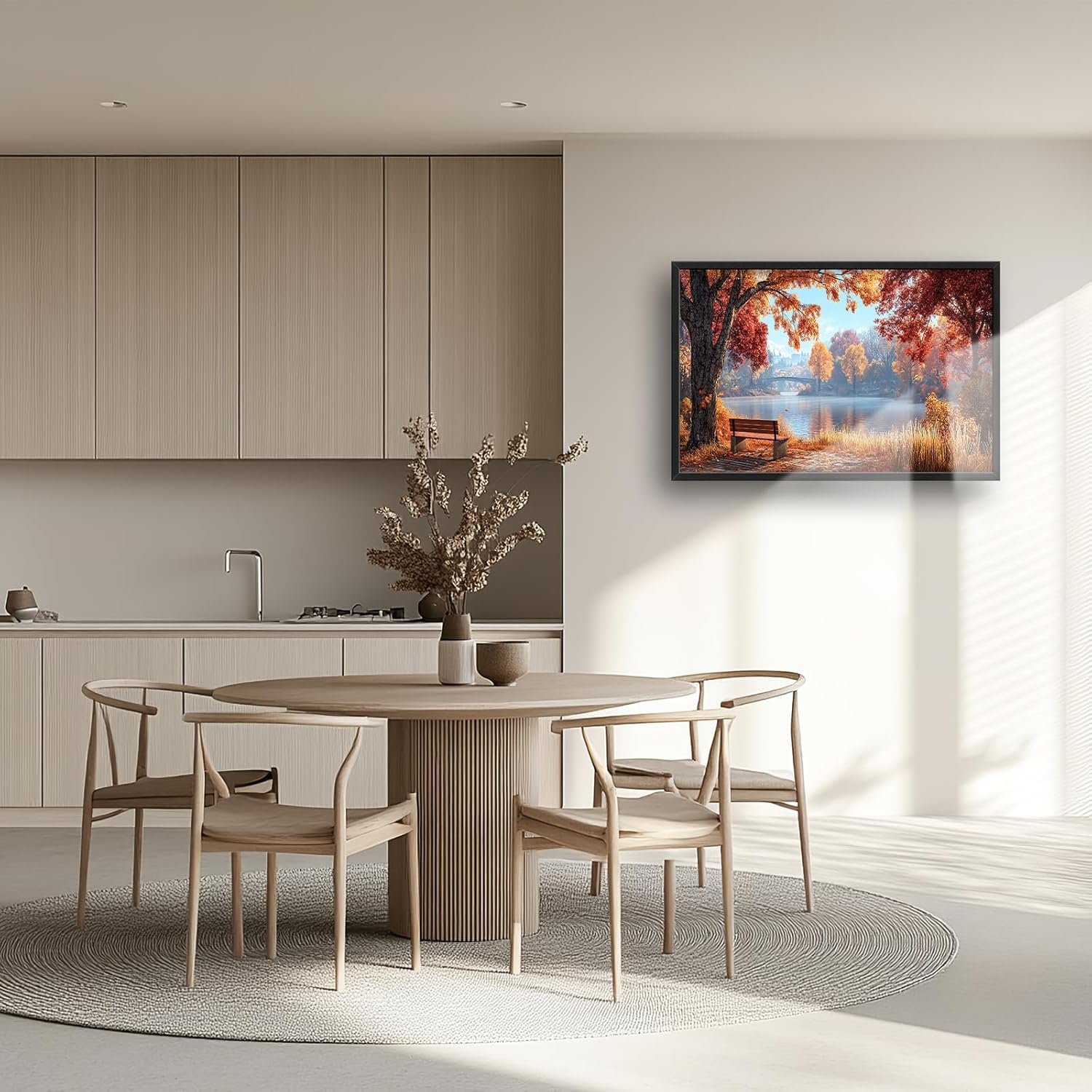 Large Autumn Tree Wall Art for Living Room, Framed Oversized Lake Landscape Wall Decor Nature Canvas Painting Modern Artwork for Living Room Bathroom Bedroom Office Dining Room 36"x24"