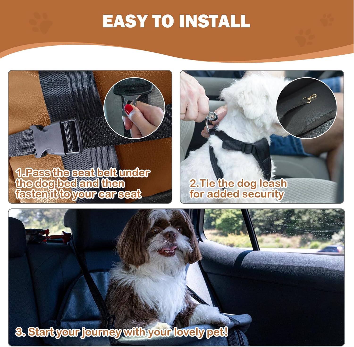 - [Excellent Design]: This dog seat has a pocket design on the side, providing ample space to store the pet's daily necessities. The high-quality artificial leather surface allows for quick and easy cleaning - just wipe with a damp cloth or remove the cover for a quick machine wash, and it is not easy to stick to pet hair.