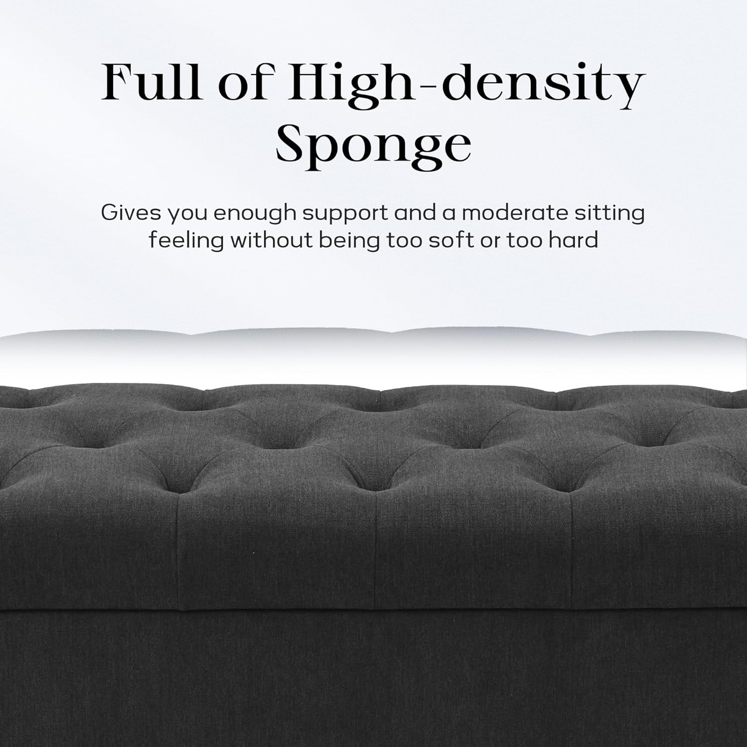 Ottoman with Storage, 48.8" Fabric Storage Ottoman Bench with Hinge, Bedroom Bench, Upholstered Benches with Seating for Living Room, Entryway (Dark Grey)