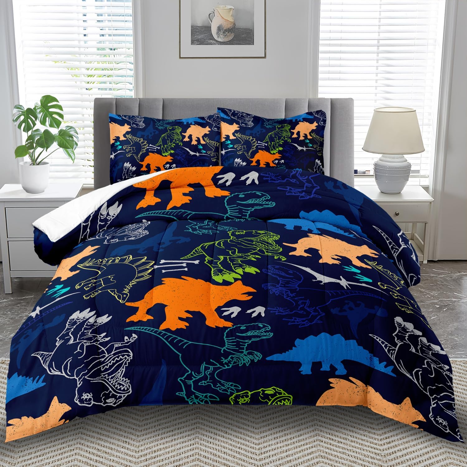 - Full Size Blue Cartoon Dinosaur Comforter Set :This bedding set includes 1 comforter(67" x 85") and 2 pillowcases(20”x30”). In order to facilitate transportation, the quilt is made of vacuum compression technology. It will be slightly wrinkled when taken apart, but it will quickly regain its fluffiness if you gently beat it.