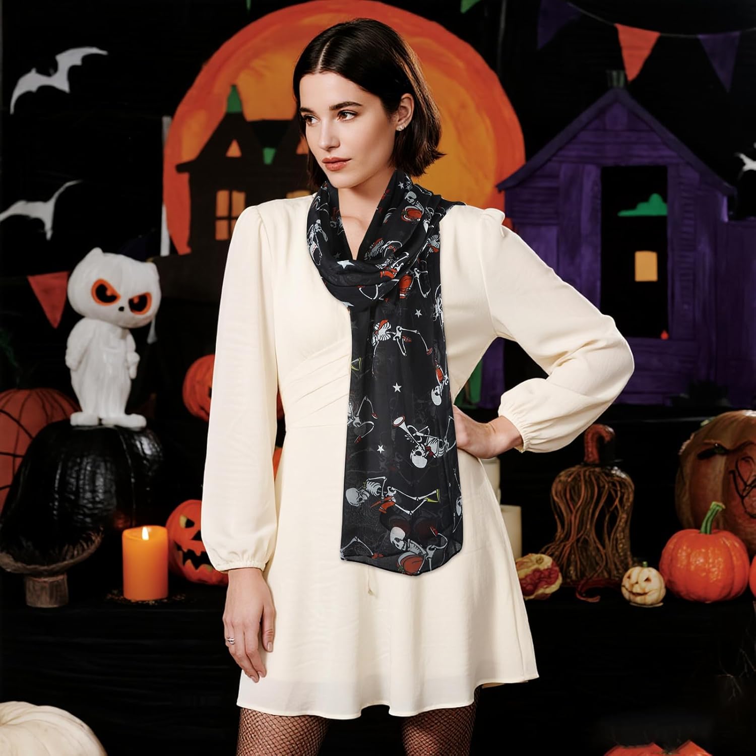 - Occasion:This Halloween-inspired print scarf is perfect as an addition to your Halloween costume, and the skull pattern scarf is in line with the festive atmosphere. You can use it as a shawl to attend an evening party, it would be gorgeous if you pair it with a nice dress