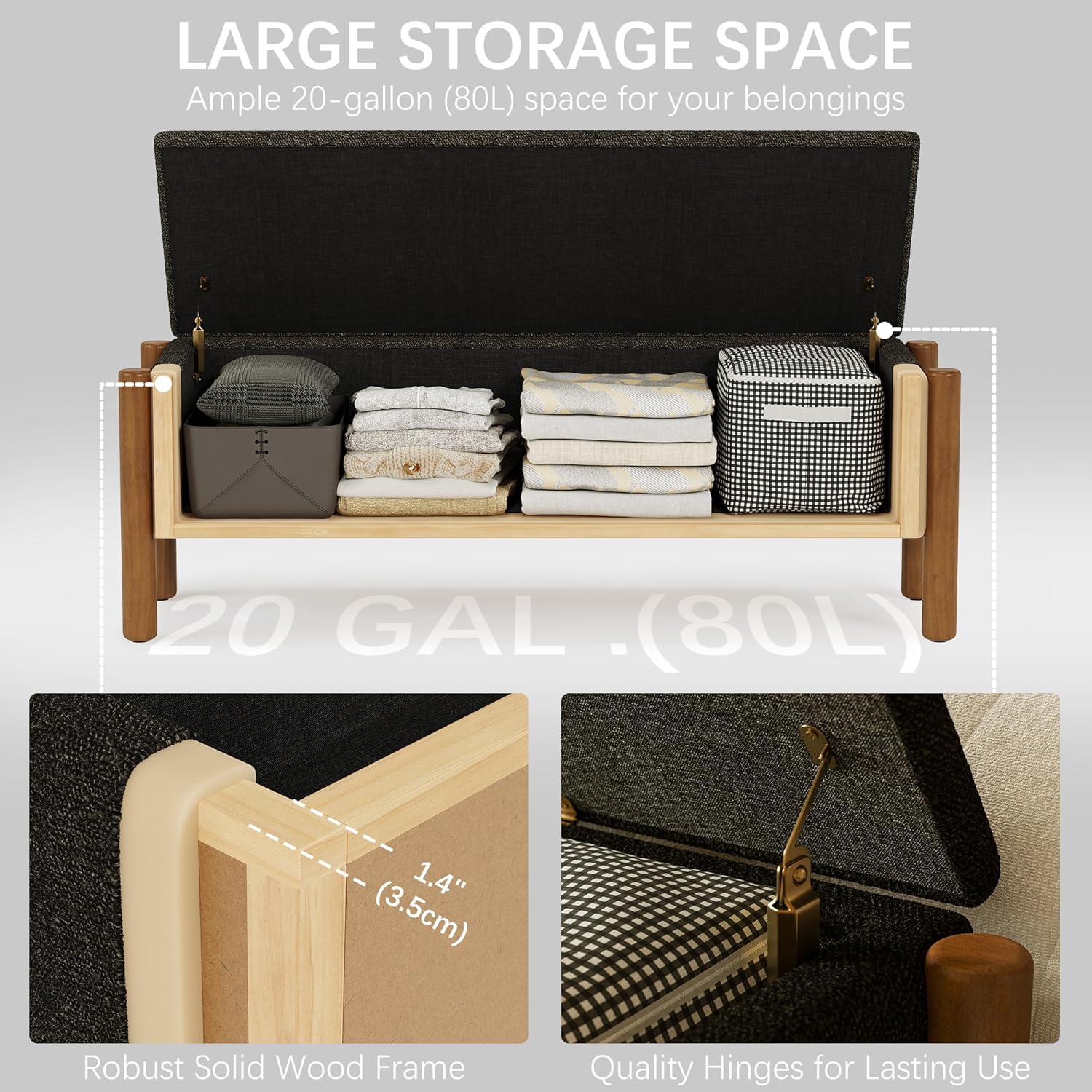 - ELEGANT & TIMELESS DESIGN: Elevate your space with this stylish Storage Bench featuring genuine walnut wood-grain legs and plush 5.5cm cushioned seating. Wrapped in skin-friendly loop yarn fabric, this chic Ottoman Bench seamlessly enhances bedroom, end of bed, entryway, or livingroom decor while offering lasting comfort.