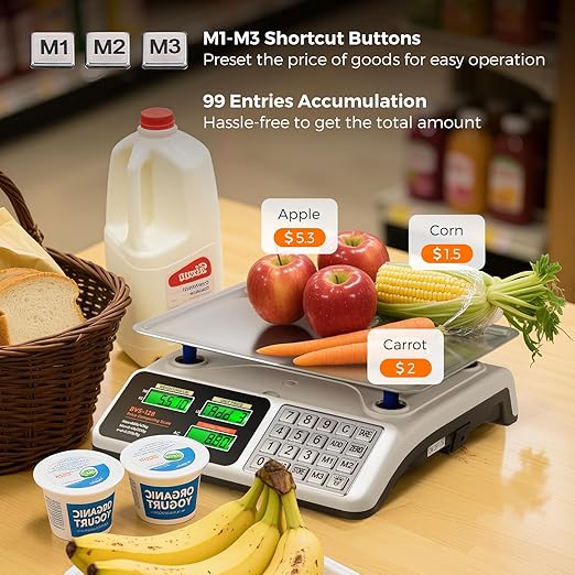 - 【Precision Price Computing & High Capacity】This commercial scale boasts a high 88lb / 40kg capacity and precise measurements in increments of 0.01lb / 5g, ensuring accurate, fast, and reliable transactions for any priced-by-weight item. Perfect for busy environments where speed and accuracy are paramount.(Not for Trade)