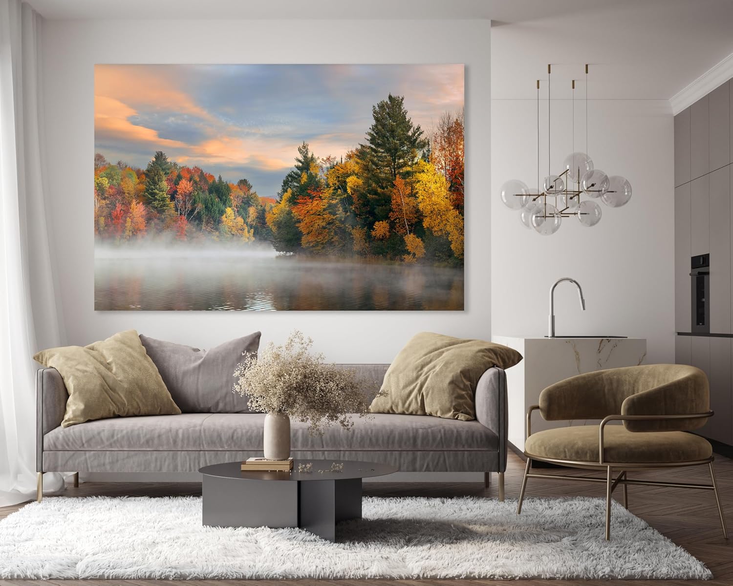 Nature Wall Art Prints - Ocean Forest Mountain Lake Canvas Landscapes - Small to Extra Large Living Room Bedroom Kitchen Bathroom Décor (Misty Fall Reflection, 16L" x 24W")
