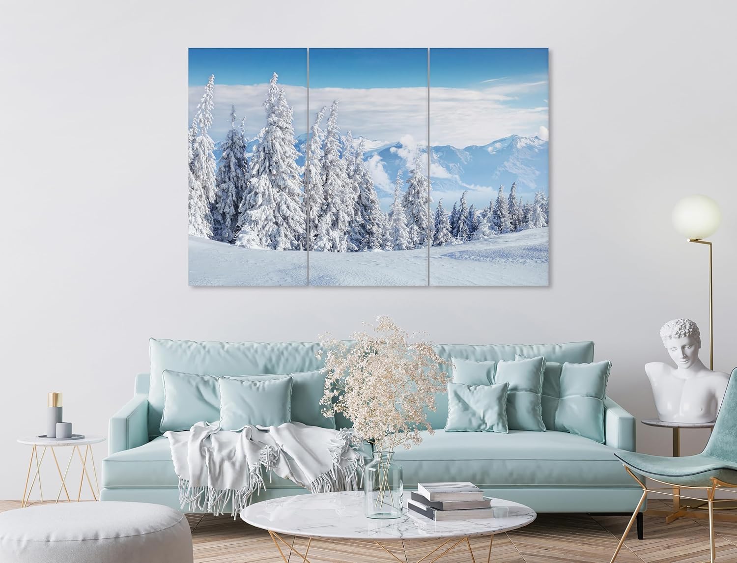 Nature Wall Art Prints - Ocean Forest Mountain Lake Canvas Landscapes - Small to Extra Large Living Room Bedroom Kitchen Bathroom Décor (Snow Covered Trees on Mountain, 47L" x 71W" - 3 panels)