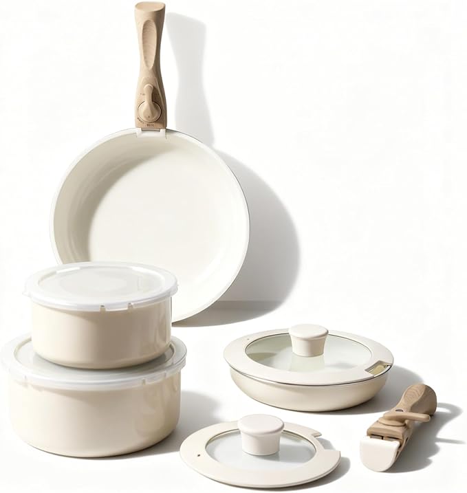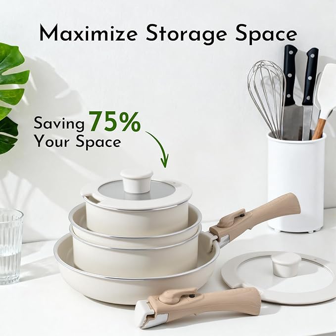 10-Piece Ceramic Nonstick Cookware Set, PFAS/PFOA/PTFE-Free & Non-Toxic Pots and Pans Set with Detachable Handles, Dishwasher Safe & Induction Compatible for Kitchen & RV Cooking