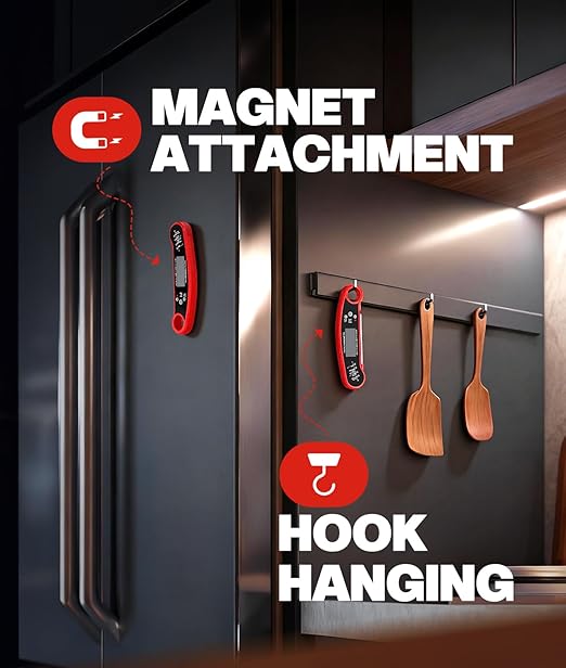 - Powerful Features: Easily switch between °C and °F. The wide, bright LCD with backlight ensures clear readings outdoors or at night. Simple to calibrate and beautifully packaged, it makes an ideal gift for any cooking or grilling enthusiast, helping you create mouth-watering meals effortlessly.