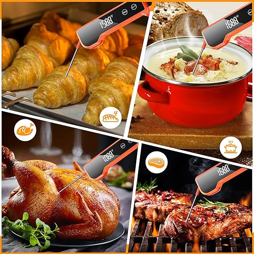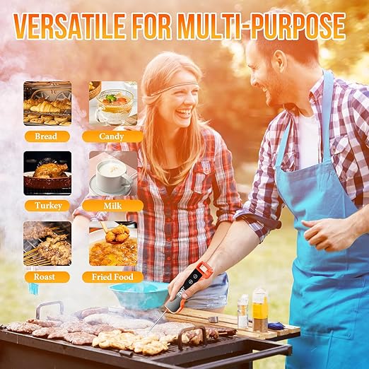 - Multi-Use Kitchen Tthermometer: Our thermometer is suitable for various rapid temperature measurement scenarios, from cooking and grilling to making candy and checking water temperature.With built-in magnets and a large hanging hole, storing the thermometer on your refrigerator or oven or a hook is a breeze. Our thermometer comes beautifully packaged in a premium foam lined box, making it an ideal present for any cooking or bbq enthusiast.