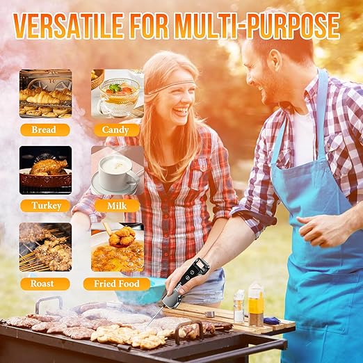 - Multi-Use Kitchen Tthermometer: Our thermometer is suitable for various rapid temperature measurement scenarios, from cooking and grilling to making candy and checking water temperature.With built-in magnets and a large hanging hole, storing the thermometer on your refrigerator or oven or a hook is a breeze. Our thermometer comes beautifully packaged in a premium foam lined box, making it an ideal present for any cooking or bbq enthusiast.